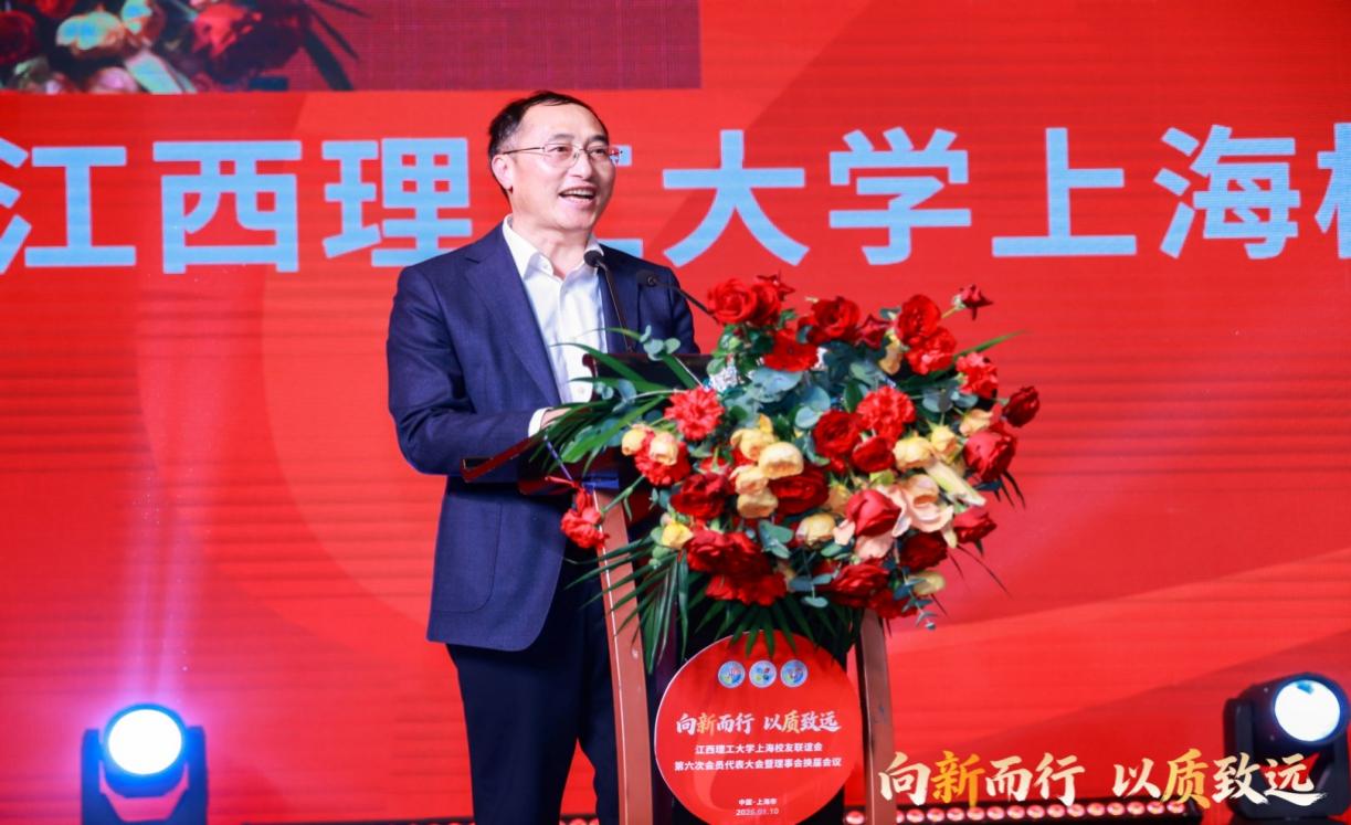 肖承贵发表讲话,他高度肯定了江西理工大学及上海校友联谊会在促进赣沪交流,尤其在有色金属、稀土产业领域协同发展中所发挥的积极作用。他期望学校及上海校友联谊会能进一步聚焦江西产业发展需求,深化产教融合,强化区域协同,在服务江西高质量发展、助推家乡建设中展现新作为、谱写新篇章。