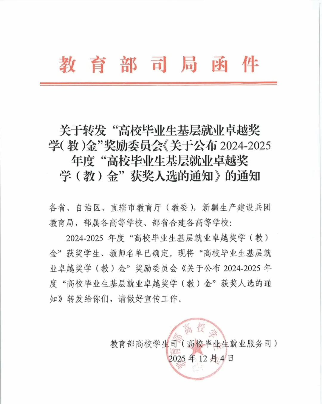 12月4日,教育部公布2024-2025年度“高校毕业生基层就业卓越奖学(教)金”获奖名单,我校应用科学学院2017届会计学专业毕业生曾明强成功入选,以扎根雪域高原的实干实绩斩获此项殊荣,成为高校毕业生基层就业的先进典范。