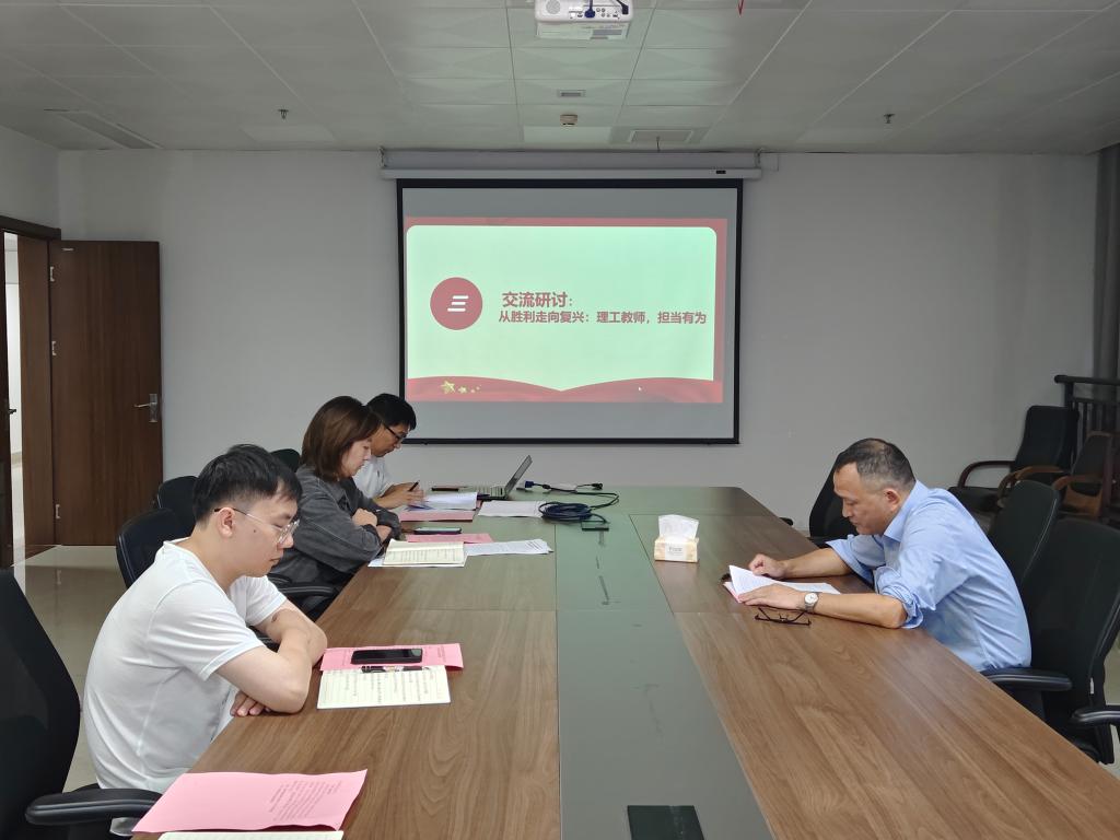 支部党员结合2025年党员基本培训第二次集中大课《中国共产党与中华民族伟大复兴》的学习内容以及习近平总书记近期重要讲话精神,围绕“从胜利走向复兴:理工教师,担当有为”主题研讨交流。谢晓聪表示,作为一名大学教师,将秉持“志存高远、责任为先”的校训,锤炼党员品质,坚守教育初心,以实际行动践行理想信念,在自己平凡的岗位上发挥作用,贡献价值。